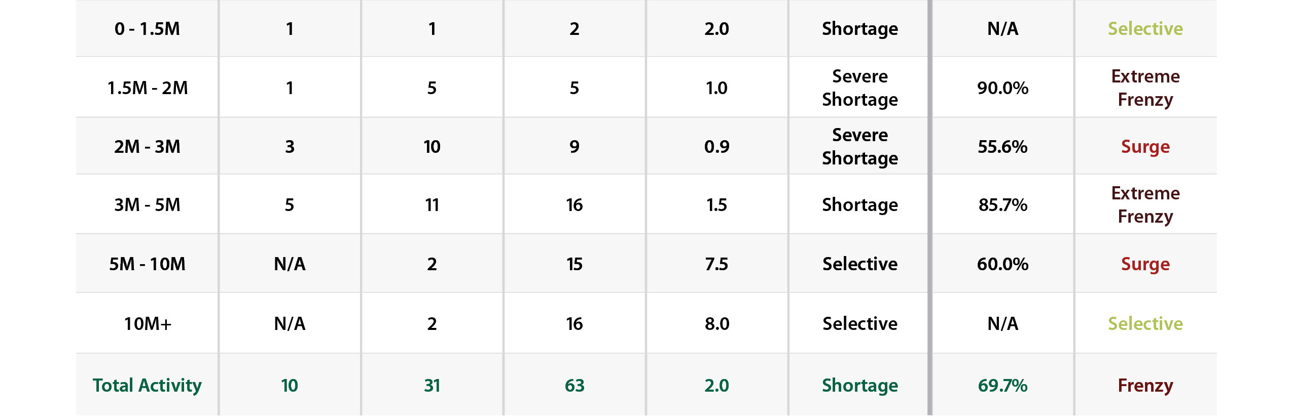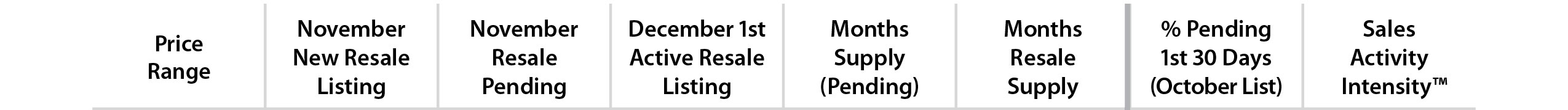 The Laguna Beach real estate market is white-hot! Buyers are waiting patiently for each new listing to hit the market, as many price ranges have reduced levels of available inventory. Sales Activity Intensity™ for each new listing will remain at frenzy and higher as we head into the new year.